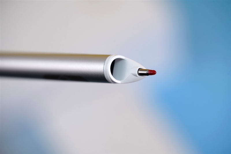 正在握笔部位有两个较着的镭雕丝印的小手标记。