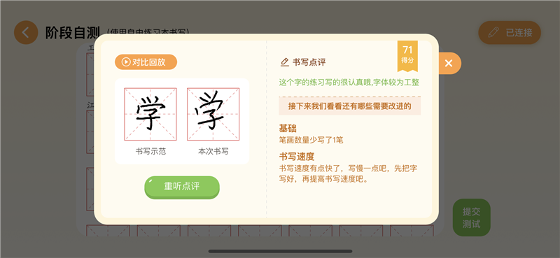 选择“阶段自测”,可模仿专业教员的点评体例,打制“硬件+软件+办事”办事,教材划一的程度孩子不会呈现练字的瓶颈,